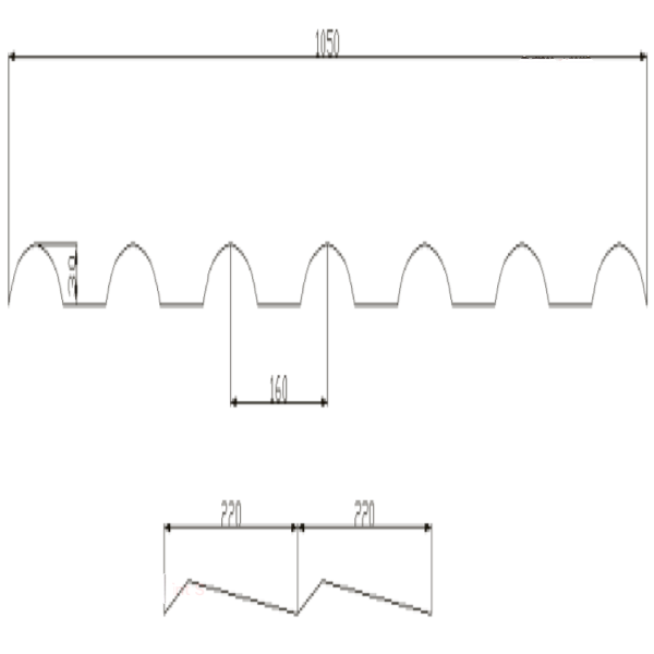 Wave spacing:160mm; pitch:220mm