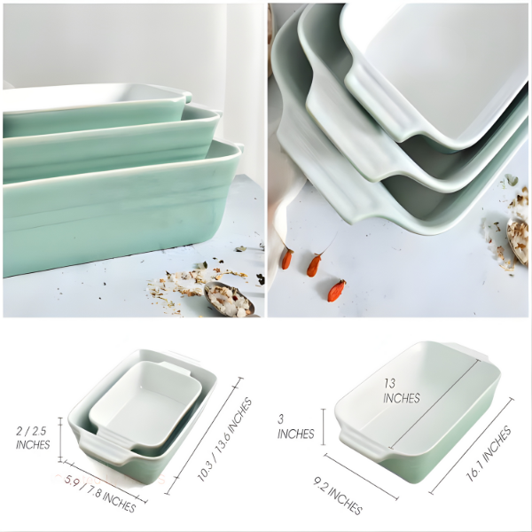 These ceramic baking dishes offer exceptional convenience with their naturally non-stick, scratch-resistant surface, ensuring effortless food release and easy cleanup. Their versatility stands out—they’re ideal for baking, roasting, grilling, and preparing a wide range of everyday meals thanks to their oven-safe and dishwasher-safe design. Beyond performance, they elevate any kitchen with their sleek, modern look, making them perfect for both casual cooking and stylish serving. With the added benefit of a three-piece set, you get multiple size options to suit any occasion, whether hosting guests or preparing a simple meal for one.