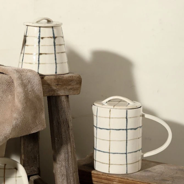 Elegantly quench your thirst or serve refreshing beverages with our Ceramic Pitcher, a charming addition to any home or gathering. This pitcher is crafted from high-quality stoneware, a material known for its strength and durability, and is adorned with hand-painted stripes that give it a touch of whimsy and style. With an 800ml capacity, it is the perfect size for serving drinks to a small group or for personal use throughout the day.