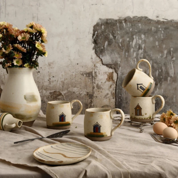 This ceramic pottery dinner set combines artisanal charm with everyday functionality. Each piece is handcrafted, featuring rustic textures and unique details that add elegance and warmth to any table. The set includes dinner plates, salad plates, deep soup bowls, and cozy mugs, all crafted from durable ceramic that retains heat to keep food at the ideal temperature.